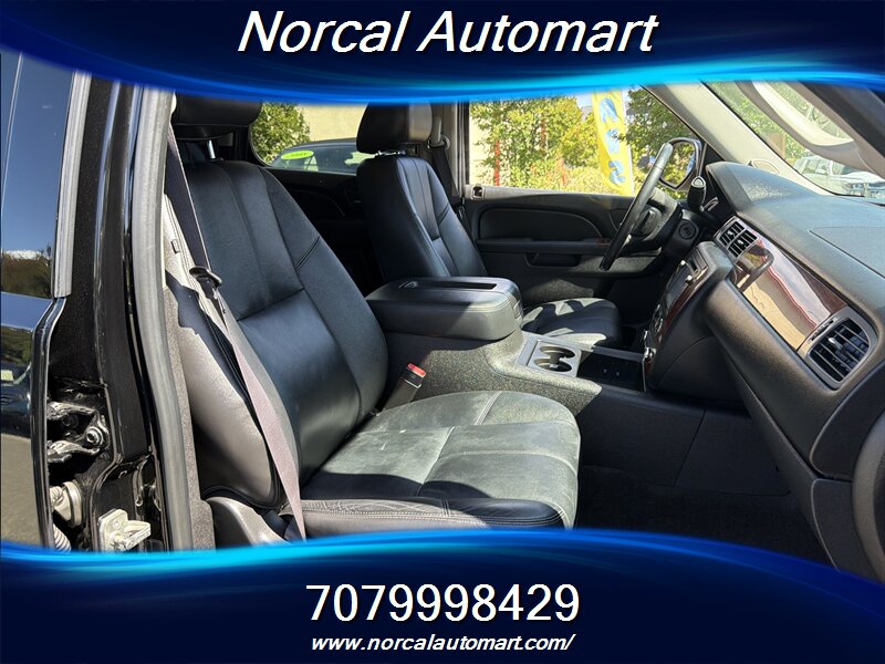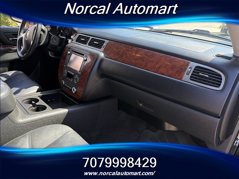 2013 Chevrolet Tahoe LT — Black exterior with Ebony leather interior. This Tahoe is powered by the proven Vortec Iron Block 5.3L FlexFuel V8 (320 hp / 335 ft-lb) with Active Fuel Management and a smooth 6-speed automatic transmission, delivering strong highway performance and capable towing while offering the flexibility to run E85 where available.