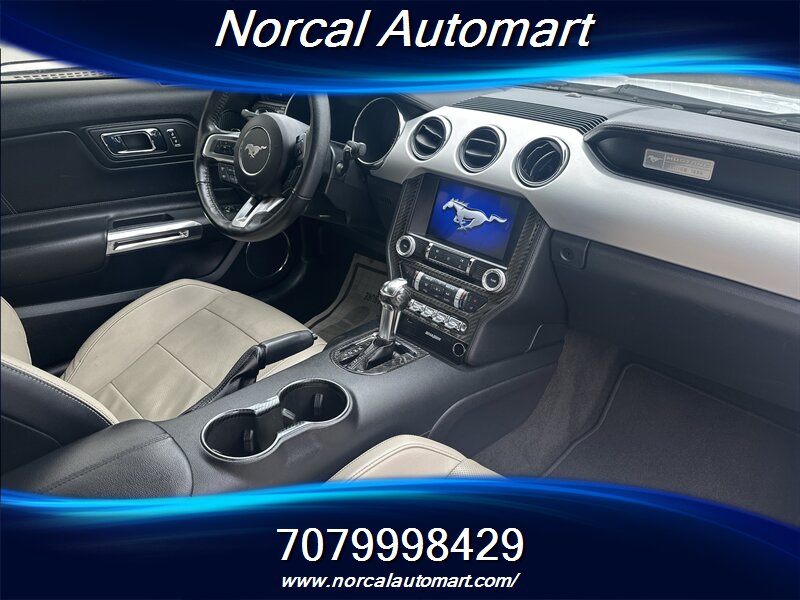 Step inside to discover a refined interior featuring luxurious tan leather seating that provides both comfort and support during spirited drives. The cabin is thoughtfully designed with driver-centric controls and high-quality materials throughout, ensuring an enjoyable driving experience. The Mustang GT is equipped with a variety of factory default features, including: