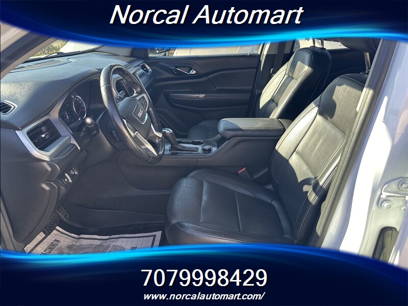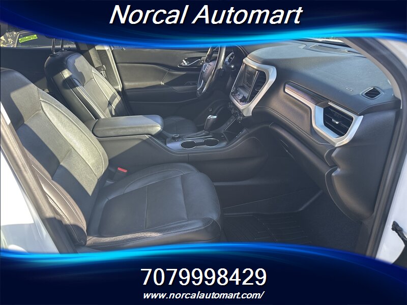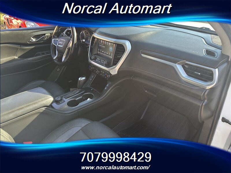 The Acadia's exterior is finished in a pristine Summit White, enhancing its modern and sophisticated appearance. This color choice not only exudes elegance but also reflects the Acadia's robust character. The sleek lines and bold stance of the SUV are complemented by 18-inch aluminum wheels, giving it a commanding presence on the road.