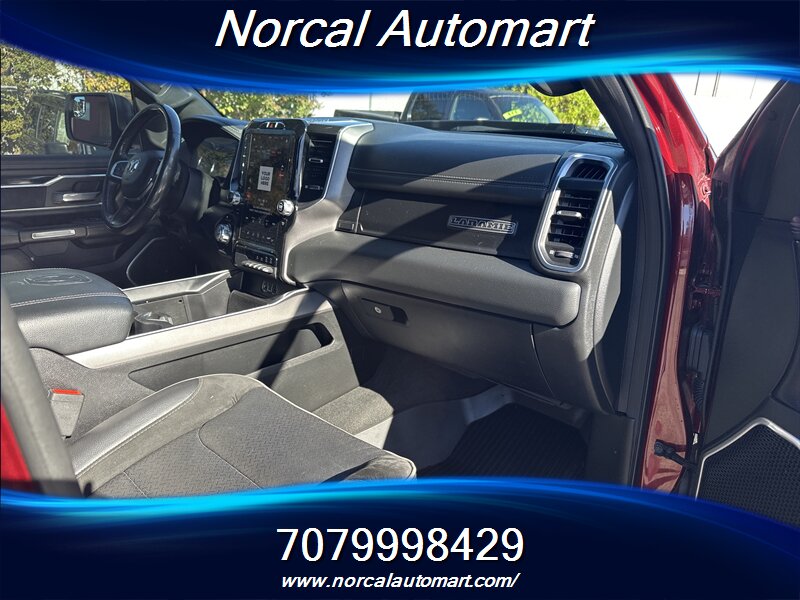 Dressed in a striking Delmonico Red Pearl Coat, the exterior of this RAM 1500 Laramie SPORT commands attention. The bold lines and muscular stance are complemented by premium features such as: